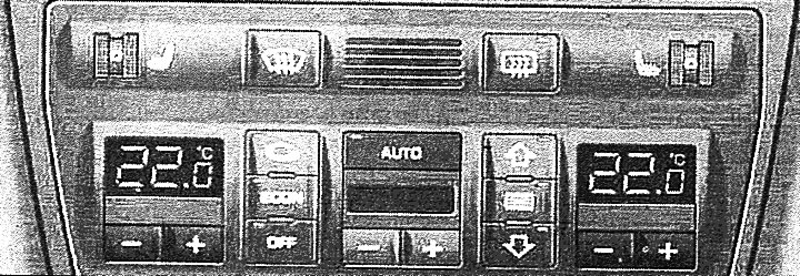 Возможно как раздельное, так и комбинированное манипулирование клавишами. При необходимости вернуться в автоматический режим распределения воздуха отключить соответствующие функции нажатием данных клавиш раздельно или нажатием клавиши AUTO.
