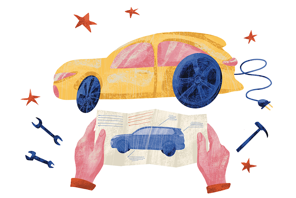 Я просмотрел море референсов, и мне стало очевидно, что схема должна иметь не только функциональную, но и художественную ценность — планка подачи автомобильных плакатов задана очень высоко. Мы с командой рассматривали даже вариант генерации 3D-моделей с помощью ИИ по чертежам, но технология, к сожалению, еще не дошла до фотореализма и вообще до реализма. В итоге остановились на классическом варианте — фронтальный боковой вид.